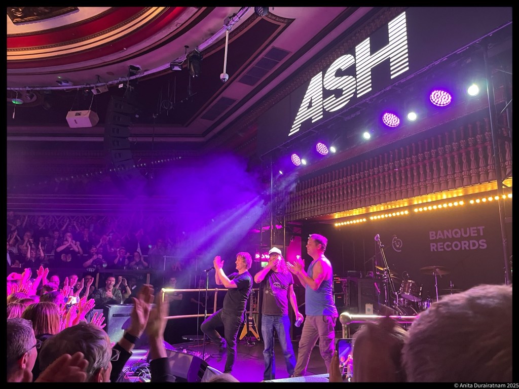 After a group bow, the band walk off stage. With these short shows, we never expect an encore. I’m not sure if this encore was planned as the amps had been turned off, but Tim, Mark and Rick returned to play a bonus song – Girl From Mars. Of course. It’s the Ash song that everyone wants to hear and very much fits into the space themed set. So much energy in the room!