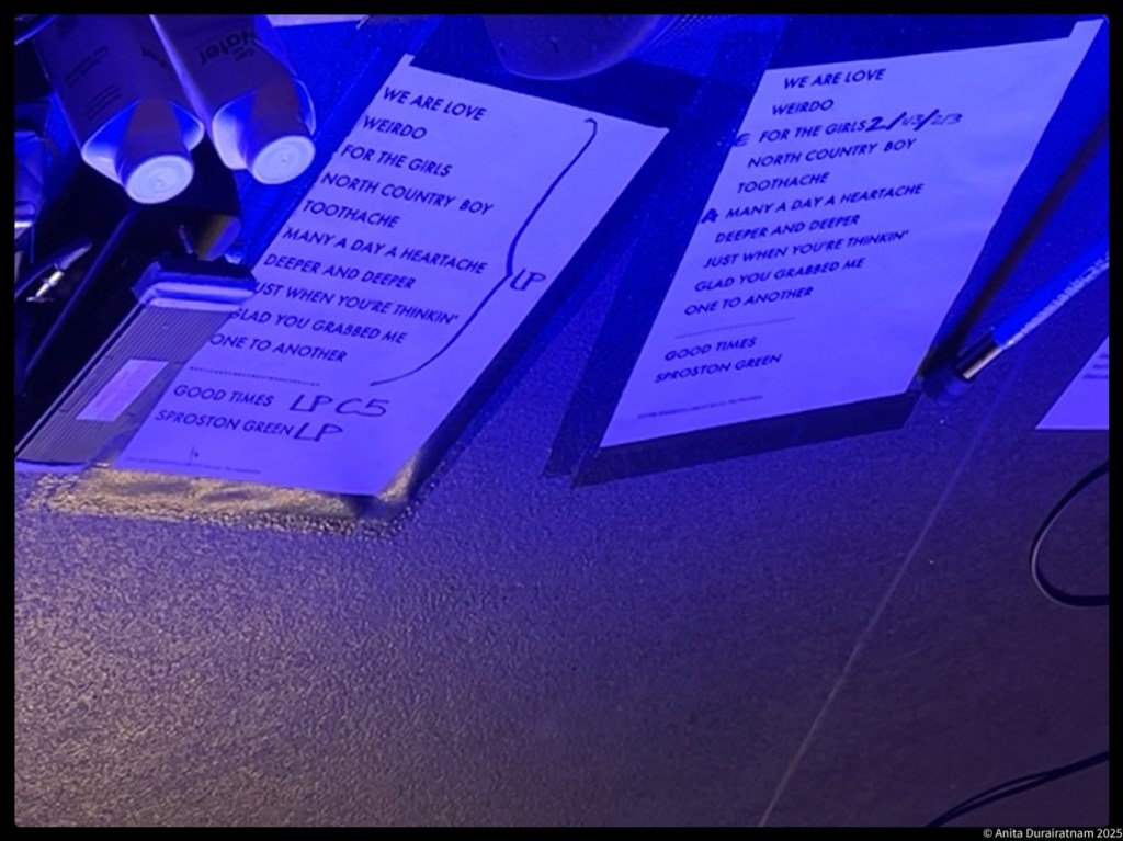 A surprising old song next, Toothache, an album track from The Charlatans album, which sounds absolutely fantastic. We are pulled back to the present with a couple more new songs, including Tim on acoustic guitar for Many A Day a Heartache. It looked like the lyrics for Deeper & Deeper were taped to the floor of the stage.